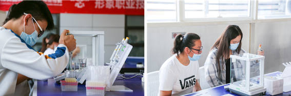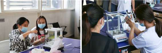 此次技能大賽共有來自生命科學服務部、醫(yī)學服務部、科研管理中心研發(fā)一部和研發(fā)二部、HLA服務部和實驗診斷部等部門共168名員工報名參加,比賽分為筆試與實操兩部分。筆試是基礎,只有掌握扎實的實驗室規(guī)章制度和管理、生物安全、儀器操作注意事項等基礎知識,才能練就過硬的專業(yè)技能。今年筆試部分增加了新型冠狀病毒相關題目,結合疫情防控需要,強化相關檢測安全知識。實操部分將理論與實踐相結合,考驗實驗員移液器操作技能:分別取3次液體進行稱量,考核移液器使用的重復性、準確性及儀器操作是否規(guī)范,著眼業(yè)務能力和熟練程度比拼。