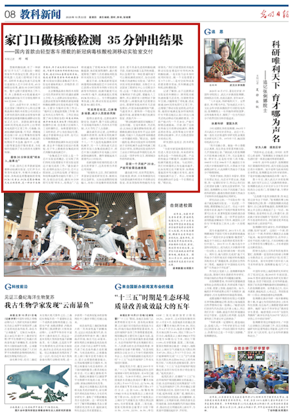 截至目前,全集成新型冠狀病毒現(xiàn)場檢微流控芯片分析系統(tǒng)已獲得4項發(fā)明專利和5項實用新型專利授權,檢測靈敏度可達150拷貝/毫升,檢測速度比常規(guī)PCR快3倍以上。為方便檢測結果快速上報,移動實驗室還同時配備5G通信系統(tǒng)。