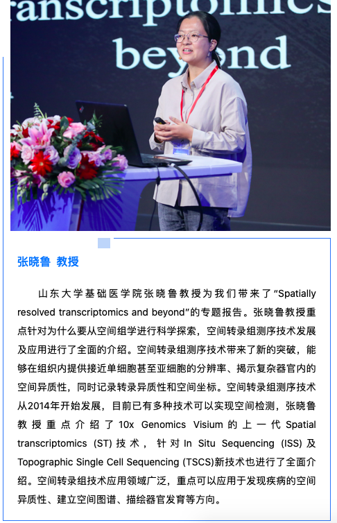 清華大學(xué)醫(yī)學(xué)院研究員、博士生導(dǎo)師,生物芯片北京國家工程研究中心常務(wù)副主任,博奧生物集團(tuán)有限公司高級副總裁,北京博奧晶典生物技術(shù)有限公司總裁邢婉麗女士為本次會議進(jìn)行了開幕式致辭。邢婉麗總裁表示單細(xì)胞測序技術(shù)及空間轉(zhuǎn)錄組技術(shù)在生命科學(xué)和醫(yī)學(xué)研究領(lǐng)域的應(yīng)用日益受到關(guān)注,為高分辨率研究細(xì)胞分群和組織功能研究提供重要的支撐,對發(fā)現(xiàn)組學(xué)間關(guān)系、記錄動態(tài)生物活動具有非常重要的意義,為科學(xué)界和醫(yī)學(xué)界更加深入地去認(rèn)識生命的本質(zhì),解析胚胎發(fā)育過程、腫瘤發(fā)生發(fā)展、新冠肺炎免疫機(jī)制、發(fā)現(xiàn)新的生物標(biāo)志物和治療靶點(diǎn)等提供全新而絢爛的研究視角。邢婉麗總裁對所有報(bào)告嘉賓及參會嘉賓的到來表示熱烈歡迎及衷心感謝!