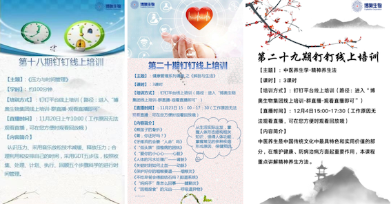 疫情期間,為確保員工身體健康、增強身體免疫力,博奧統(tǒng)一組織全體員工進行新冠核酸檢測,并在食堂餐廳熬制中藥代茶飲,清熱解毒、芳香辟穢、利濕避瘟。除此之外還開拓了線上培訓方式,借助直播平臺為大家分享方方面面的健康管理知識。