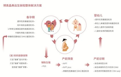 此外,博奧晶典結合國內(nèi)外出生缺陷預防發(fā)展及臨床需求,不斷更新婦幼健康檢測產(chǎn)品并提升醫(yī)學檢驗服務能力,構建孕前、產(chǎn)前及新生兒三級防控體系,打造出生缺陷及罕見病精準防控平臺。博奧晶典婦幼健康檢測項目包含染色體異常系列如無創(chuàng)產(chǎn)前基因檢測(NIPT)、染色體微缺失/微重復無創(chuàng)產(chǎn)前基因檢測(NIPT-plus)、染色體異?;驒z測(CNV-seq)、染色體微陣列芯片檢測(CMA)、胚胎植入前遺傳學篩查(PGS)、染色體核型分析等,以及單基因病系列如遺傳性耳聾基因檢測、地中海貧血基因檢測、遺傳代謝病檢測、單基因遺傳病攜帶者篩查、臨床全外顯子組基因檢測、個人全外顯子組基因檢測(WES)、增強全外顯子組基因檢測(WES+CNV-seq)等,致力于推動基因檢測技術在婦幼健康領域的廣泛開展,助力我國出生缺陷和罕見病精準防控。