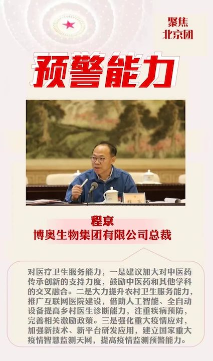 在調(diào)研過程中,程京代表了解到,隨著經(jīng)濟社會發(fā)展、收入水平的提高,廣大群眾越來越重視疾病的預(yù)防。程京代表提出建議:建“治未病”國家體系,保人民健康和國家強盛。