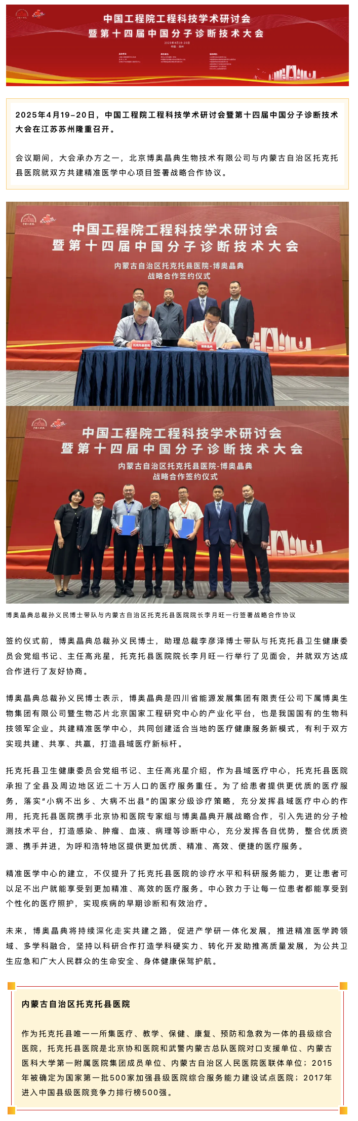 賦能縣域醫(yī)療丨博奧晶典與內(nèi)蒙古自治區(qū)托克托縣醫(yī)院簽訂共建精準醫(yī)學(xué)中心戰(zhàn)略合作協(xié)議